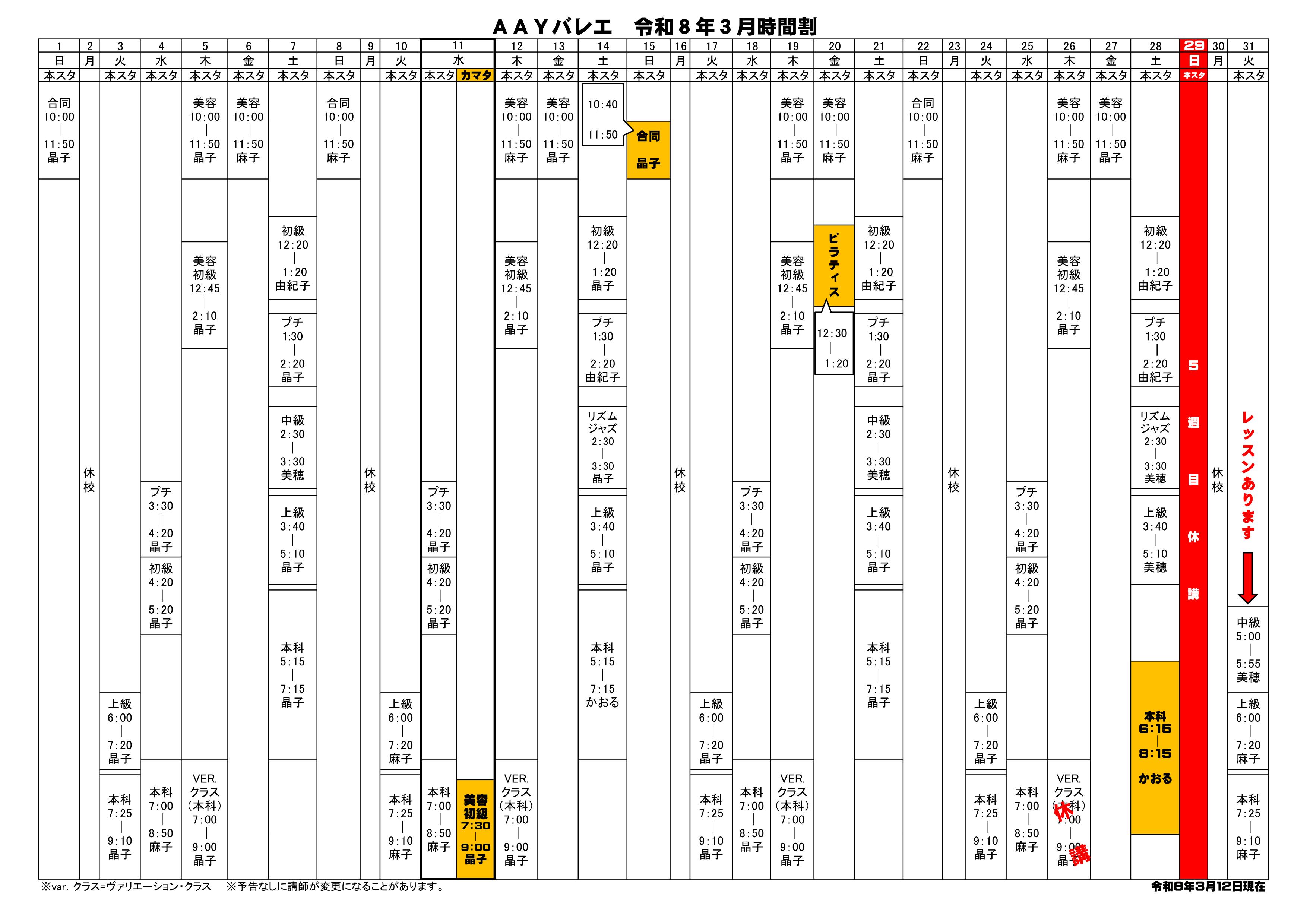 レッスンスケジュール